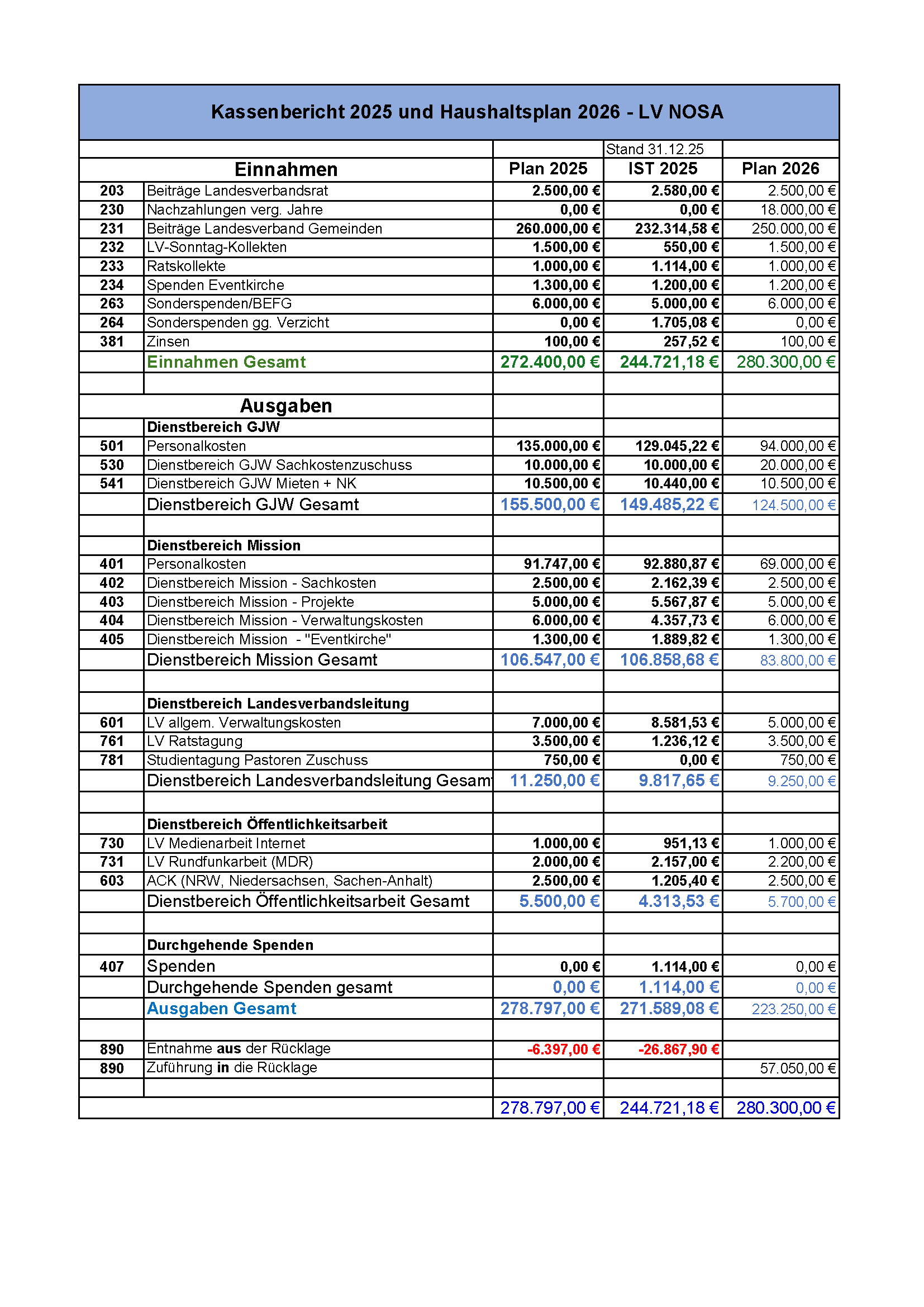 Kassenbericht 2026
